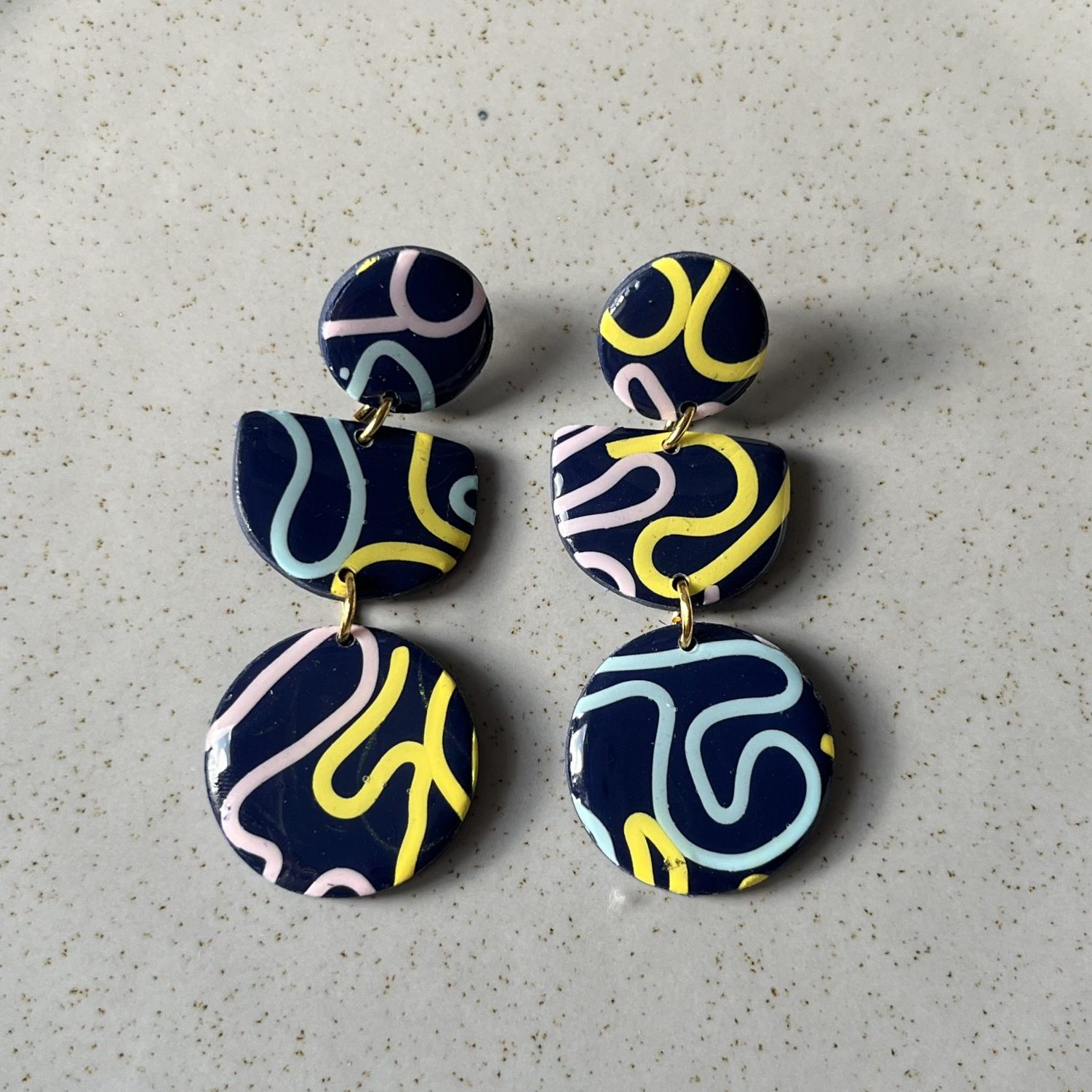 * Pendientes realizados con arcilla polimérica, la parte brillante está acabado con una resina UV.