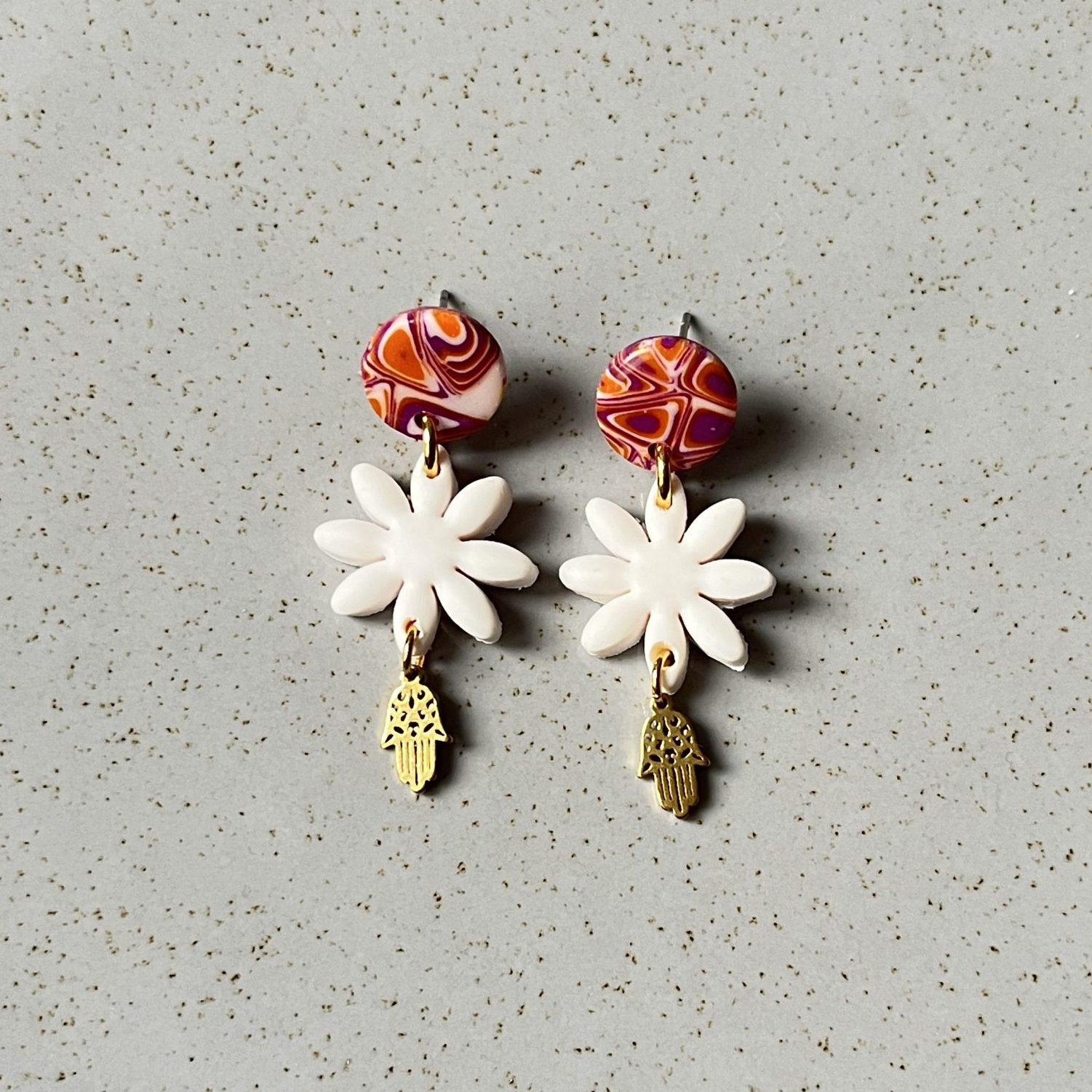 * Pendientes realizados con arcilla polimérica, la parte brillante está acabado con una resina UV.